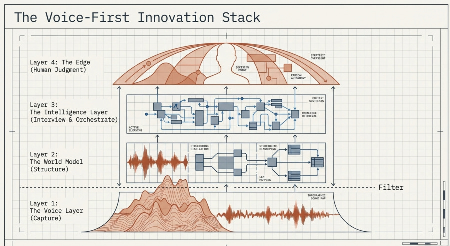L’edge ne rétrécit pas parce que le Voice Layer s’installe. Il grandit. Libérés du travail de synthèse après coup, les Innovation Managers peuvent investir plus de temps dans ce qui reste leur vrai travail, exercer un jugement que le système ne peut pas porter.