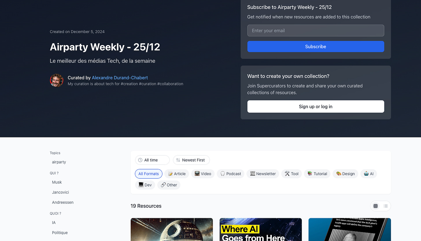 Créer des directories thématiques (Supercuration) basés sur votre veille (articles, vidéos, podcasts, etc.).