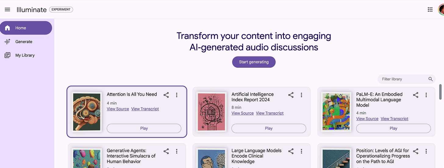 Illuminate • Comme NotebookLM mais pour les fichiers plus importants, type scientifiques, et dont la sélection reste à la main de Google