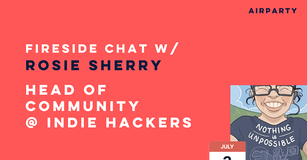 🎧 Fireside Conversation w/ Rosie Sherry head of community @ Indie Hackers • Airparty | featuring 🌟Rosie Sherry 🌟 Link