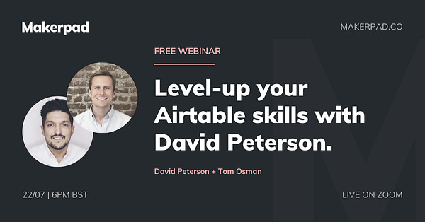 ✎ Level-up your Airtable skills with David Peterson • Makerpad • Link | shared by 🌟Ben Tossel 🌟